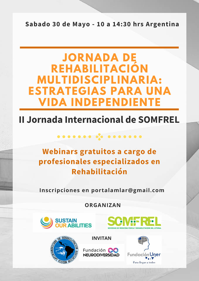 Esta jornada se llevó a cabo gracias a la organización ofrecida por Sustain Our Abilities y SOMFREL – Sociedad de Medicina Física y Rehabilitación del Litoral y el apoyo de AMLARFundación Uner y Fundación Neurodiversidad.