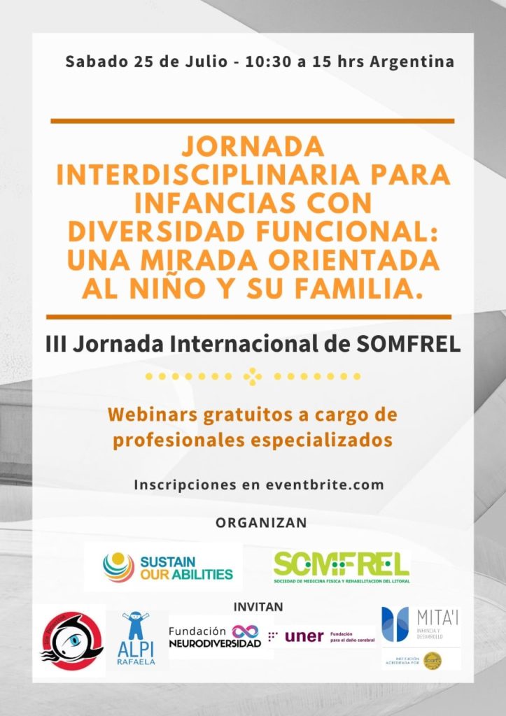 Desde Fundación Uner sabemos de la importancia de la investigación, formación y divulgación para llegar cada día a ayudar a más personas con alteraciones cerebrales y sus familias. Por este motivo, una vez más colaboramos con Sustain Our Abilities y Somfrel (Asociación de medicina física y rehabilitación del litoral) en la organización de sus jornadas internacionales. En este caso, la Jornada Interdisciplinaria para infancias con diversidad funcional: Una mirada orientada al niño y su familia.