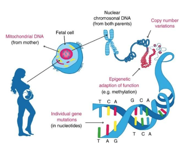 Hay cuatro tipos de variaciones en el ADN que contribuyen a la patogénesis de la parálisis cerebral (Figura 1):